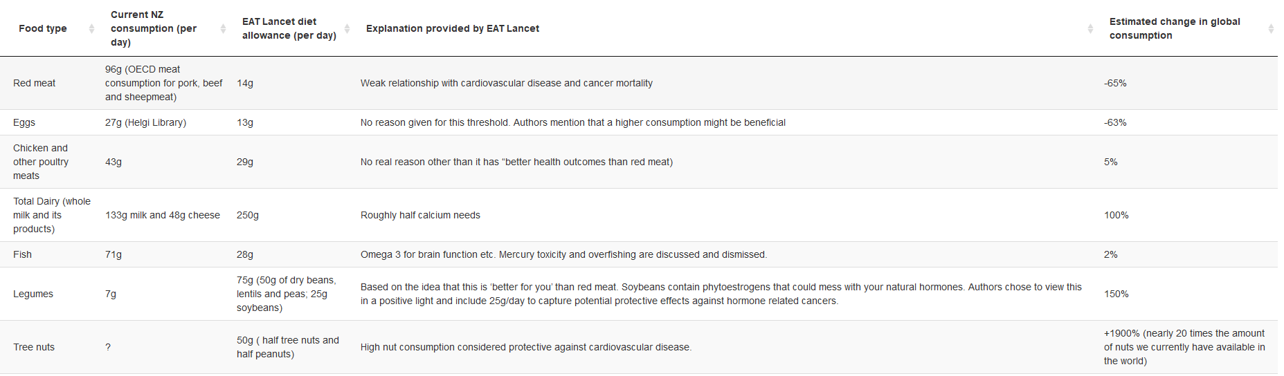 Doing a back of the envelope calculation (using OECD consumption data), the average New Zealander consumes around 96 grams of red meat per day. Under the EAT-lancet diet recommendations, we would cut out over half a kilogram of red meat out of our diets per week. It sounds unachievable, unappetising and unnecessary. But, there is no doubt that this “science” is getting pushed in front of the nose of a lawmaker or doctor near you.